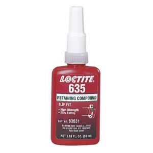 | Loctite 635 High Strength, Slow Cure 250ml Designed for the bonding of cylindrical fitting parts. The product cures when confined in the absence of air between close fitting metal surfaces and prevents loosening and leakage from shock and vibration. Typical applications include rotor to shafts in fractional and subfractional horsepower motors. Locks bushings and sleeves in housings on shafts. Augments press fits. |