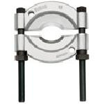 15-5 Kukko 250mm Bearing Separator Separators are used for pulling ball bearings, roller bearings, inner races and other tight-fitting parts. The sharp, wedge-shaped edges of the separator jaws engage behind the parts to be withdrawn and pry them off their seats. For pulling items off of a shaft, use the separator together with a suitably sized series-18 pulling tool. The bolts of the matching pulling tool screw into the two tapholes on the separator. |
