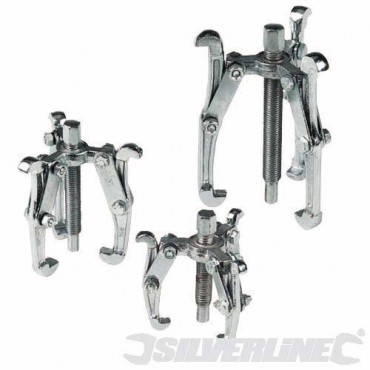 3pce set of heavy-duty gear pullers. 75mm, 100mm & 150mm. Reversible for internal or external use. Silverline MS23 |