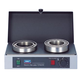 | 729659C/110V SKF Hot Plate The SKF hot plate heating device is especially designed for pre-heating batches of small bearings prior to mounting. The temperature of the plate can be adjusted to provide temperatures between 50 and 200C. The flat heating surfaces ensures even bearing heating and the cover helps retain heat and keep contaminants out. |