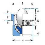 | 9810 Chrome Ball Transfer Unit High capacity, tolerance ring ball transfer unit As seen on diagram under photographic picture to the right (click to enlarge for clarity): A= 22mm B= 12mm C= 6mm D= 21mm E= 24mm F= 2.4mm |