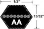 | AA116 Hexagonal Mower Drive Belt The Medway hexagonal V-belt is a temperature and oil resistant double sided drive belt that has antistatic properties with good power transmission capabilities. It is suitable for drives where an S-bend is required in which both sides of the belt have to be used for transmitting power. This type of belt is especially used in agricultural machinery. Construction and Features Standards |