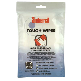 | Ambersil Tough Wipes FUNCTIONALITIES : Cleaning - Accessories High Absorbency Cleaning Wipe. Super high absorbency hand wipes over layered with an effective polymer web to give all the cleaning power of pumice without the scratching. |