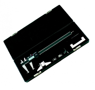 Mahr Unviersal Caliper Set 0-150mm/0-6inch Applicable as a standard caliper (fourfold measuring possibilities). When used in conjunction with the standard accessories it is also possible to measure recesses, grooves etc. With additional accessories threads, bores, serrations etc. can be measured. measuring anvils for inside/outside measurements, depth measuring bridge, setting gauge, device for constant measuring force application. Features: Technical: |