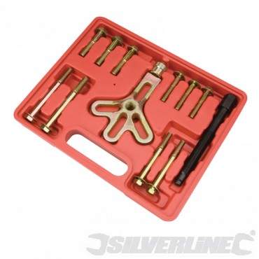 Silverline 13pce Harmonic Balance Puller Kit Silverline removes balancers, pulleys and gears with tapped holes. A floating swivel prevents damage to the shaft end. Four slots in the yoke allow for 2 or 3 hole application. Tool bolts to balancer with centre. Please note: Please allow 1-2 days for delivery on all Silverline items. |